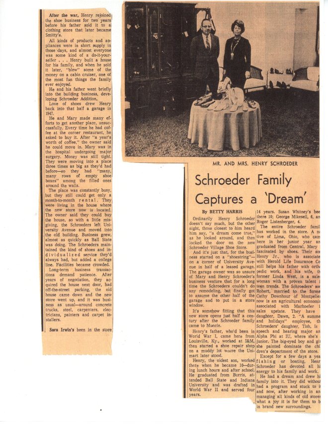Article about the Schroeder shoe store – Provided by the Shroeder family
